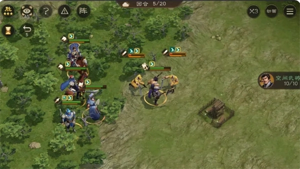 这边建议选择荀彧来打,如此一来成就达成会更容易些。要是想在五回合之内取得胜利,开局就得进行分兵。典韦的反击能够让九宫格范围内的敌军都受到伤害,再加上曹洪的增益效果,能清理一大片敌军。所以让他们俩前往右上角(典韦获得增益后直接跳入其中进行输出)。安排4人朝右下角进攻,6人朝右上角进攻,这样就能轻松推进。不过要留意曹操的血量,总体而言这是相对简单的一关。