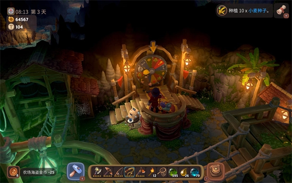 最后,游戏新增了一片可供探索的全新区域——“海盗湾”。与此前以资源采集和农场模拟玩法为主的农场、森林等地图有所差异,海盗湾更侧重于探索以及一次性的游戏内容。玩家可以“造船匠”这一新职业身份,更出色地探索该区域。与此同时,该地区还会解锁投斧头、小鸡赛跑、幸运转轮等多种不同的小游戏玩法。