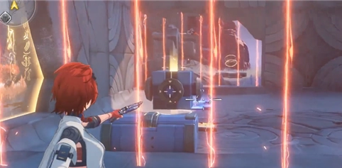 5、最后在此处开一枪,随后方块便会回到正确位置,激光也会消失,如此就能获取宝箱了。