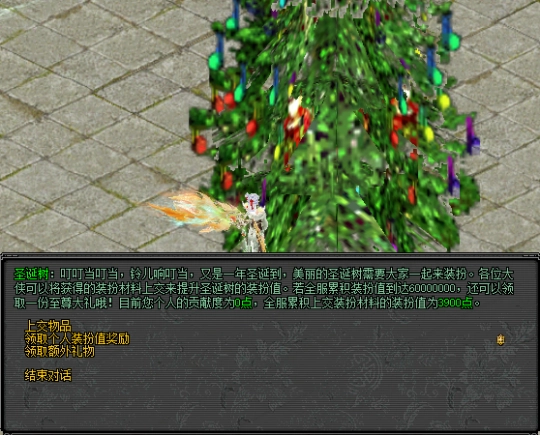 参与各类副本和日常活动来收集【装扮材料】,用这些材料为成都的圣诞树增添光彩。积累个人贡献值后,能够领取每日礼盒和累计礼盒,每天晚上21:00还会有整点限量的丰厚奖励掉落,当全服的总贡献达到指定标准时,还可以解锁珍贵的至尊礼盒。