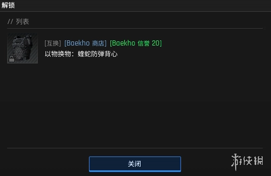 解锁获得:[互换][Baekho商店][Baekho 信誉 20]火物换物:蜂蛇防弹背心