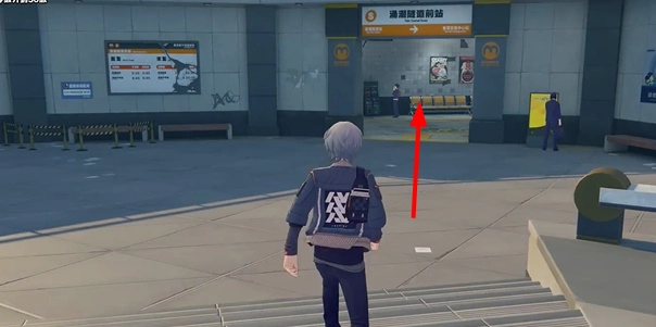 2、抵达目的地后,径直向后转身,于下图所指位置会看到一位NPC。