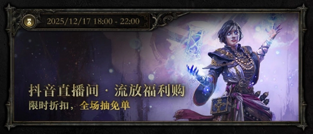 抖音直播间内,流放福利购值得闭眼冲冲冲,限时折扣享不停,更有全场抽免单,坐等流放者中的天选之子。