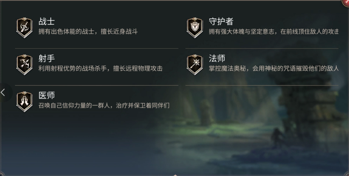 职业总共分为5种,分别为战士、守护者、射手、法师和医师。个人推荐一些三星或四星角色,毕竟五星角色在前期获取难度极大,而且养成所需条件也颇为苛刻。
