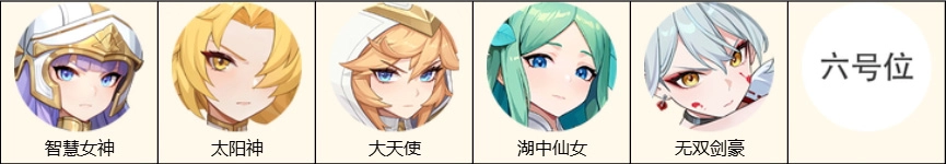 雅典娜、阿波罗、大天使、薇薇安、凛,第六个位置可以自由搭配,建议选个低费控制型角色,比如带减费套装的光弓,这样能提升手动操作时的上限。
