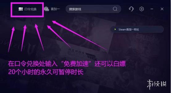2. 玩家可以使用加速器界面的【喜加一】按钮,找到自己想要领取的游戏