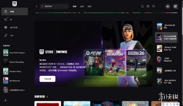3. 或者玩家也可以到EPIC官网的游戏商城中,页面下拉找到游戏领取页面