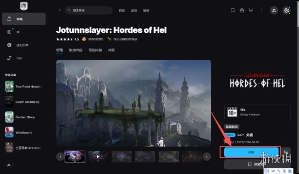 4. 进入游戏商店页面后,点击获取按钮