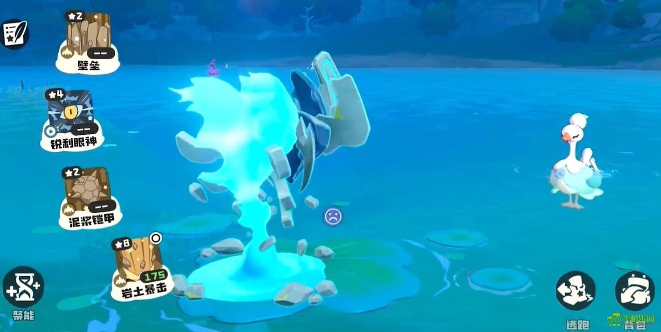 巨灵石拥有三个可使用的技能。第一个技能名为扔泥巴,是单体攻击招式,伤害倍率为120%,攻击威力尚可。第二个技能是超声波,该技能较为特殊,属于范围攻击,能同时攻击多个敌人,尽管单个目标的伤害仅70%,但优势在于具备群攻效果,且自带穿透属性,对付防御较高的敌人尤为有效。第三个技能烟雾弥散更为强大,它是巨灵石的大招,释放时巨灵石会进入霸体状态,不会被打断,被此技能命中的敌人会陷入失明状态,失明期间无法释放任何技能,相当于暂时丧失战斗能力。