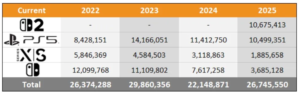 然而,索尼这款主机的全球销量还是成功突破了900万台,给它本就相当出色的销量成绩又增添了光彩。另外,因为Switch 2的推出,任天堂所受到的影响也比较有限,其销量和去年同期相比仅仅下滑了10%。