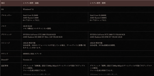 另外,《仁王3》Steam版本的系统配置要求已经公布,推荐使用RTX 3060 Ti或者RX 6700 XT及更高规格的显卡。