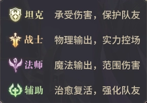 除了品阶和属性,每位英雄伙伴还有着自己的战斗风格。根据战斗风格的差异,英雄们大体可以分为坦克、战士、法师和辅助4种职业。