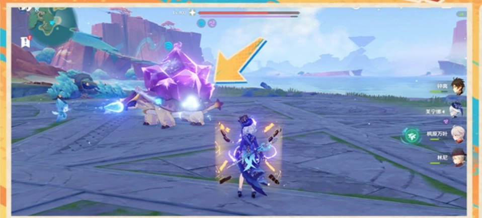 首先,我们要前往溶水域东侧那个地图上有明显标记的古老祭坛,这样就能开启挑战了。祭坛周边分布着3块电矿石,推荐使用班尼特、香菱这类角色的火元素攻击将它们击碎。等三块矿石都被破坏后,科西霍就会从地下出现,战斗也就正式打响了。