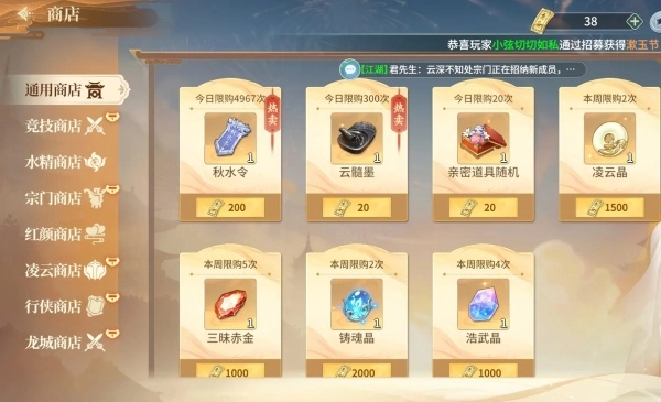 3、可直接前往通用商店,使用金券购买凌云晶,另外,参与举行的活动也能获取。