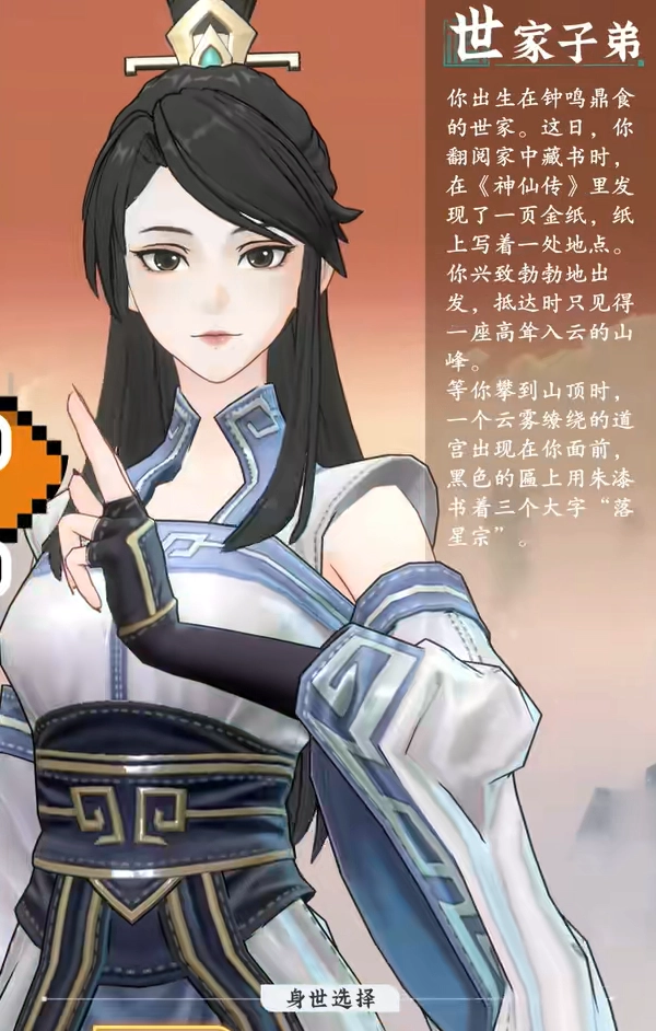 游戏里设定了世家弟子、江湖游侠、一方富商等多样的身世背景,不同的身世会对应不同的初始服装与发型,性别设定也包含其中。