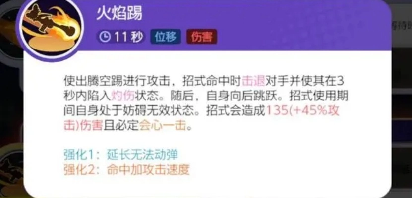 闪焰王牌的火焰踢技能,建议挑选提升攻击速度的分支,这样能让它在短时间里打出更强劲的输出,特别是在快速激活被动技能“猛火”这件事上,这个选择会很合适。