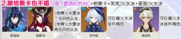 辅助输出队:以欧洛伦为核心辅助,搭配高输出角色恰斯卡,借助欧洛伦的元素爆发带来的攻击力加成,提高队伍整体的输出效率。