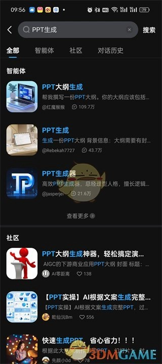 2. 接着在搜索页面里,输入【PPT生成】,随后点击搜索结果中的【PPT生成】。