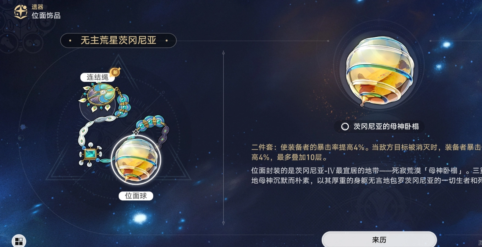 两件套效果可直接提升4%暴击率,四件套效果为击杀敌人后增加20%暴击伤害,持续3回合。这一机制有助于大黑塔在连续战斗中维持高输出水平。若该遗器获取难度较大,也可选择其他能提供暴击率、暴击伤害或攻击力加成的内圈遗器作为替代方案。