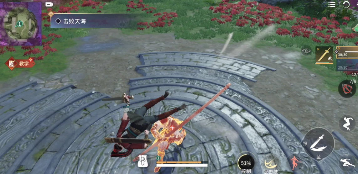 实战技巧:殷紫萍的技能和奥义都带有霸体效果,能借助霸体状态转用振刀打对手个措手不及。争夺飓风客时,把技能放在脚下,避免被敌人用白刀钩锁造成僵直。要掌握拉扯的技巧,逃跑时将技能置于脚下,接着通过壁击滑步撤离。