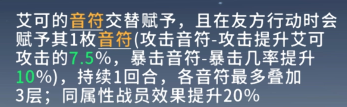 危峭的天赋能够提高行动友方的攻击力,建议将其行动顺序安排在艾可与黛灵之后,这样可以让增益效果得到最大化利用。