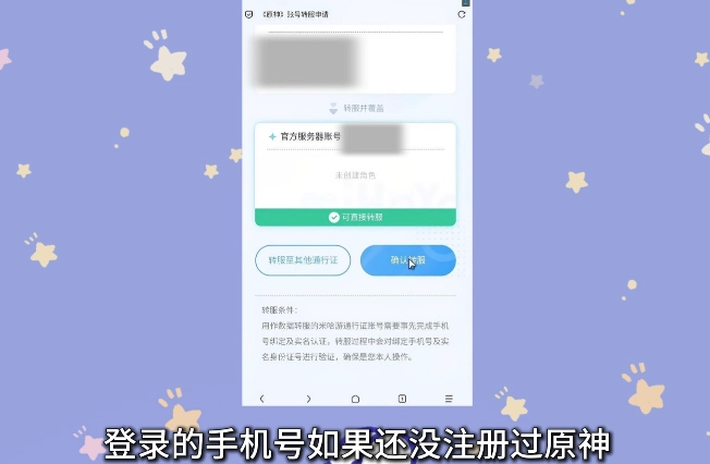 手机号绑定与实名认证要求:用于接收数据的米哈游通行证账号,需提前完成手机号绑定和实名认证操作,在转服流程中,系统将对所绑定的手机号以及实名认证的身份证号进行核验。
