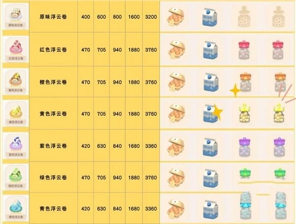 普通的糖只能赋予浮云卷基础的风味,若你想收获更多惊喜,不妨试试朵朵商人独家提供的彩糖。例如,添加紫色糖,能让你的浮云卷呈现出迷人的色泽,不仅能让人眼前一亮,或许还能在市场上卖出更高的价格。