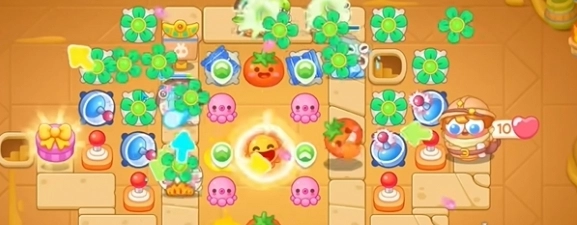 6、清除宝箱后,会得到多个小章鱼,此时使用左侧的风扇清理道具。