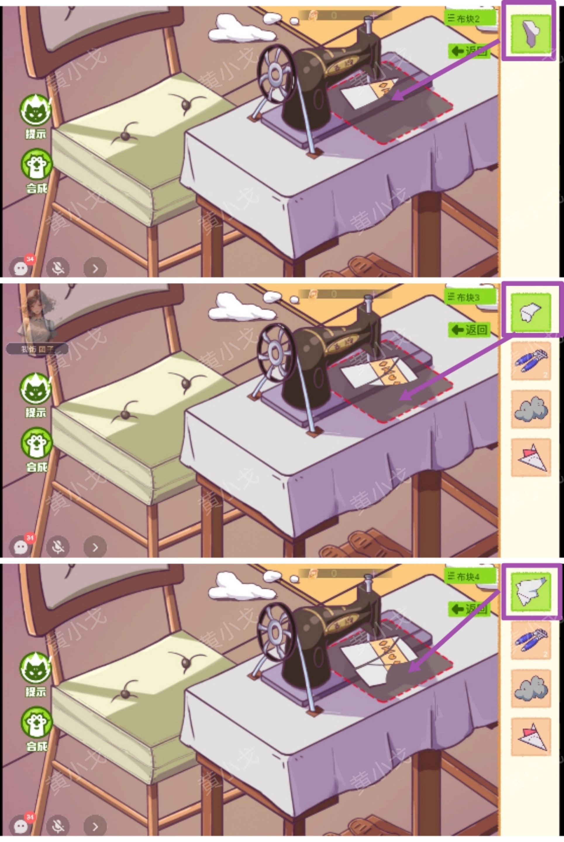 6.点击四个布块,完成拼图,获得【特殊图案的被套】