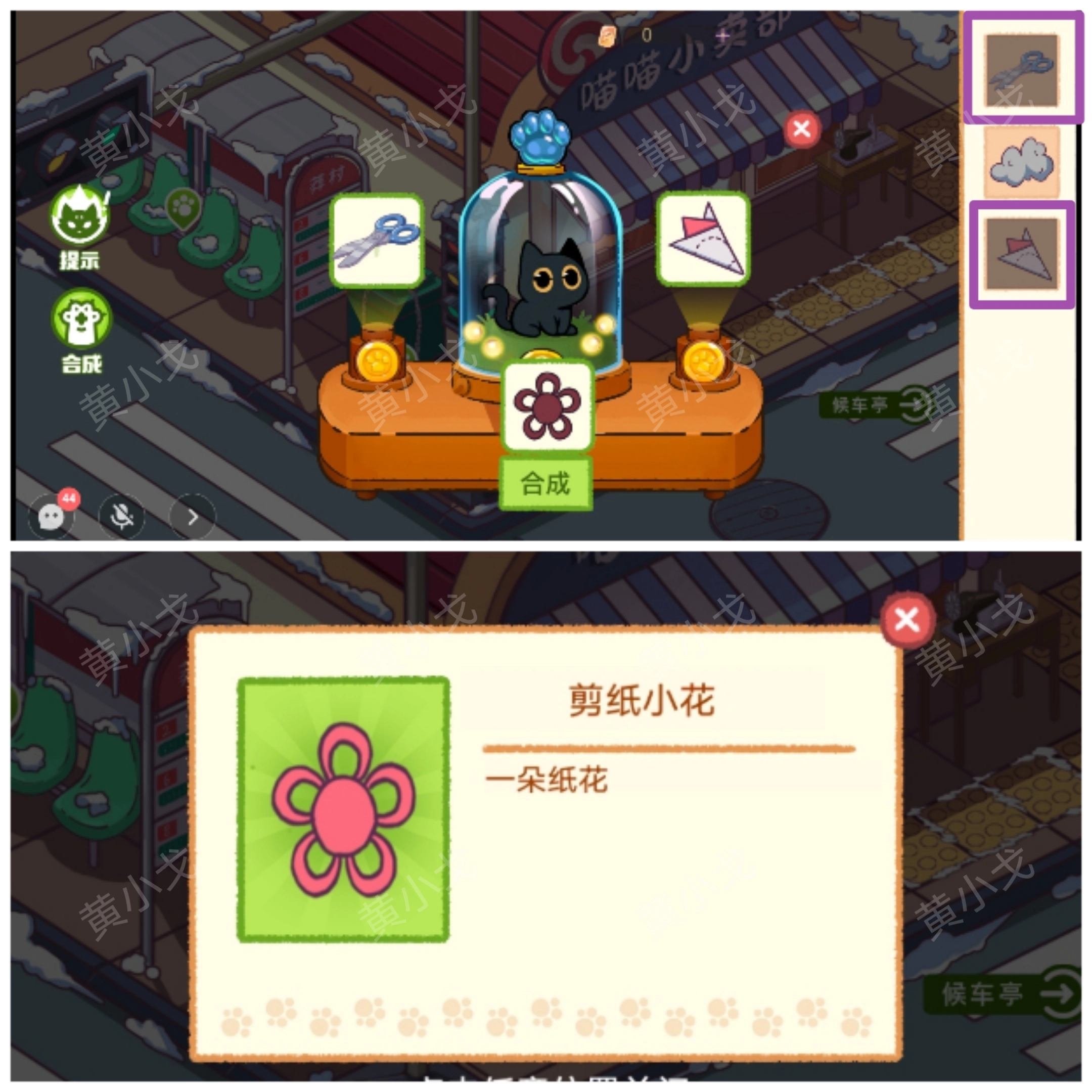 8.合成【剪纸】和【手工剪刀】,获得【剪纸小花】(【手工剪刀】要多多传过来)