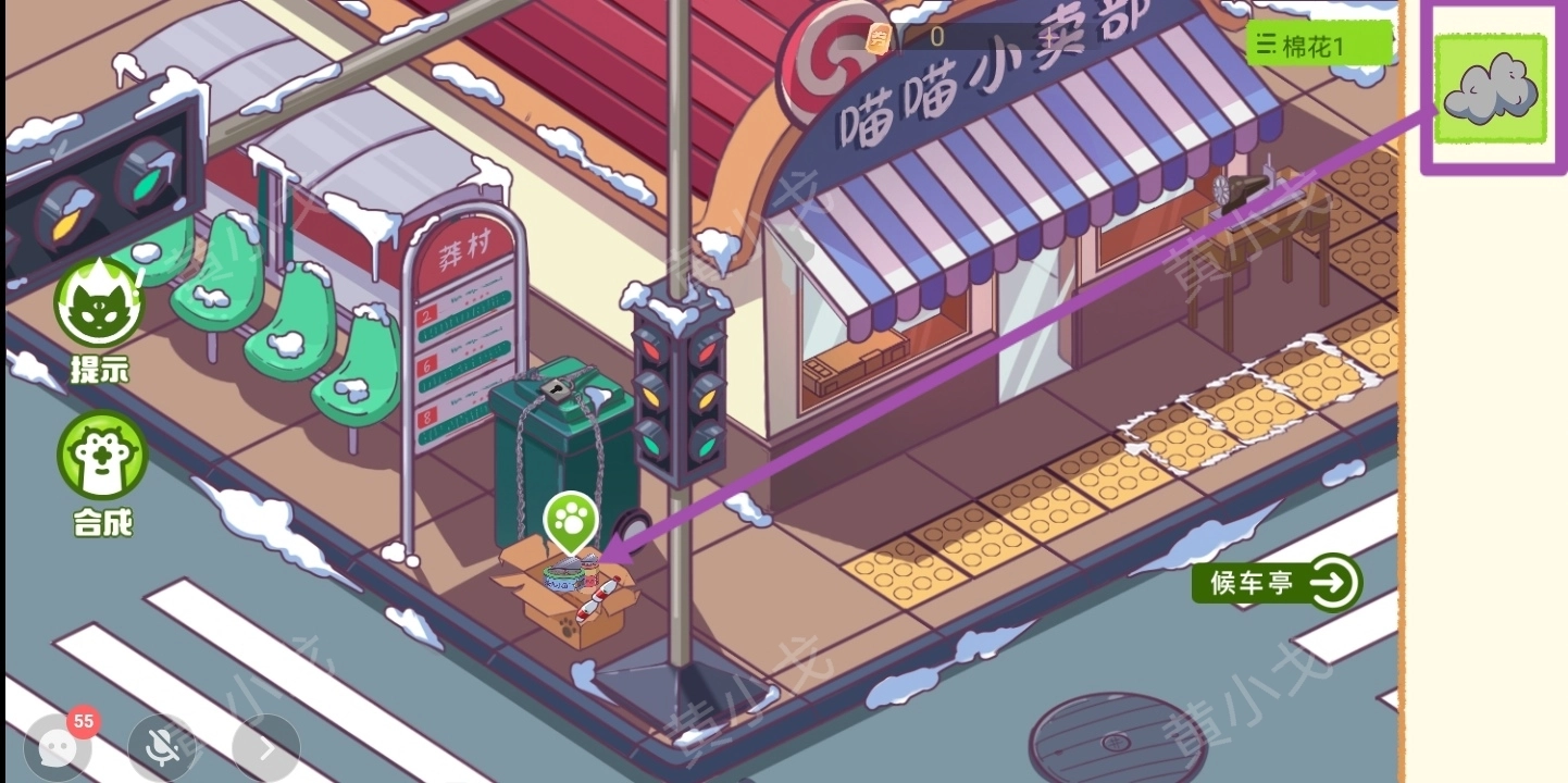 10.(公交站)把【棉花1】放入纸盒里传给多多