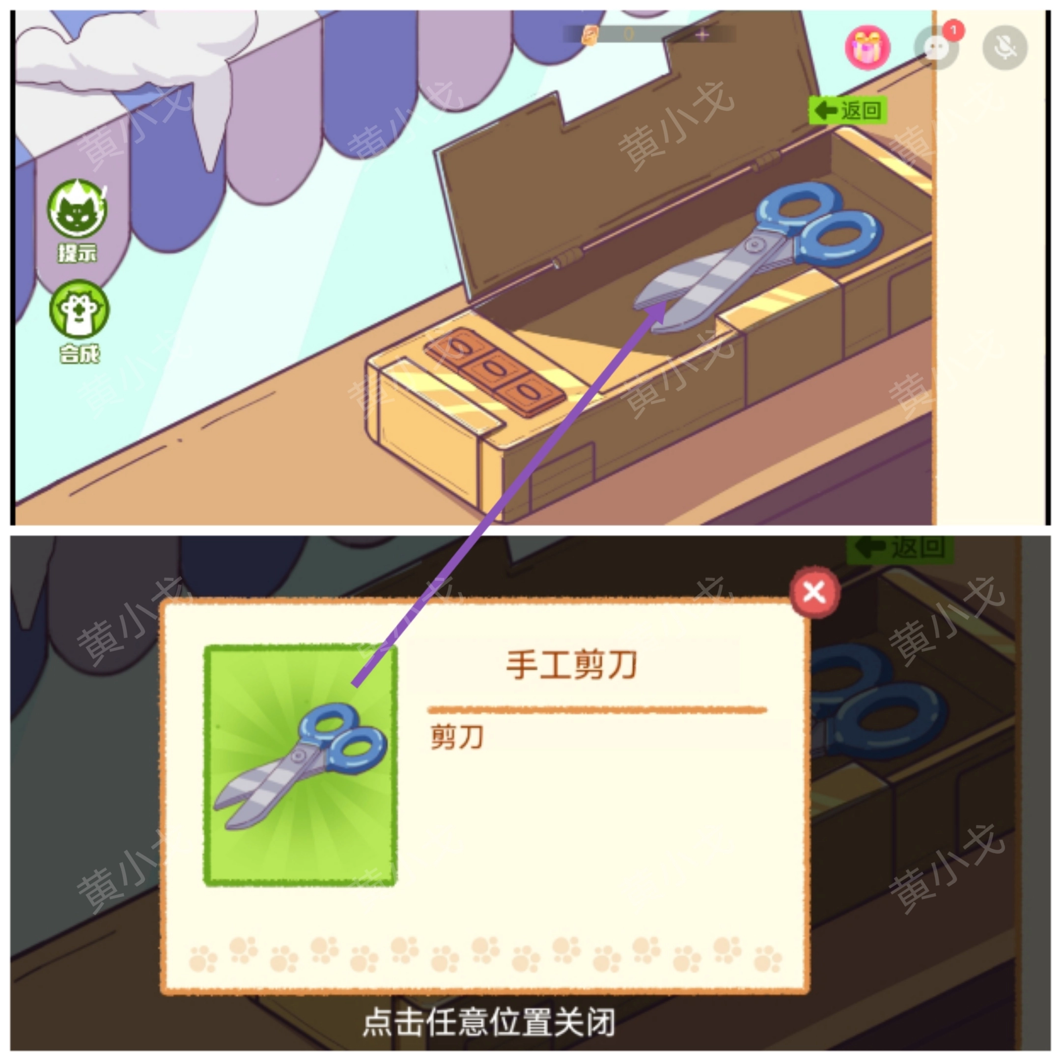 4.打开盒子,获得【手工剪刀】