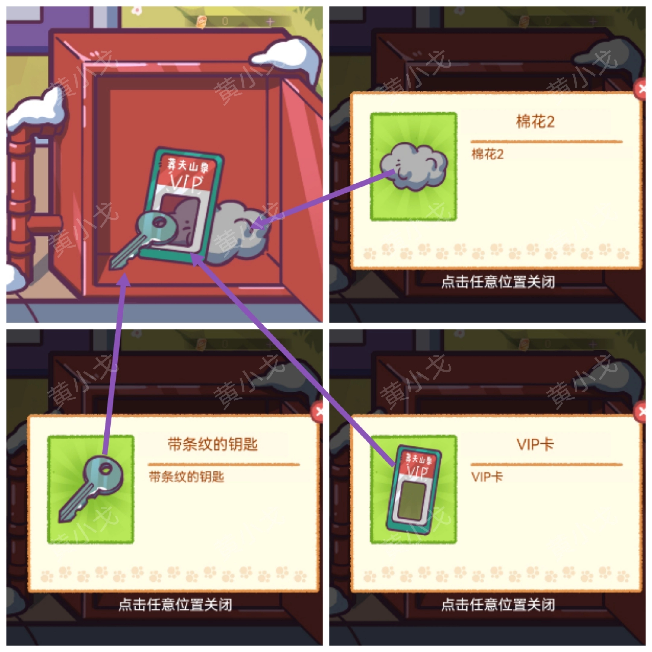 6.打开消防栓,获得【带条纹的钥匙】、【VIP卡】和【棉花2】