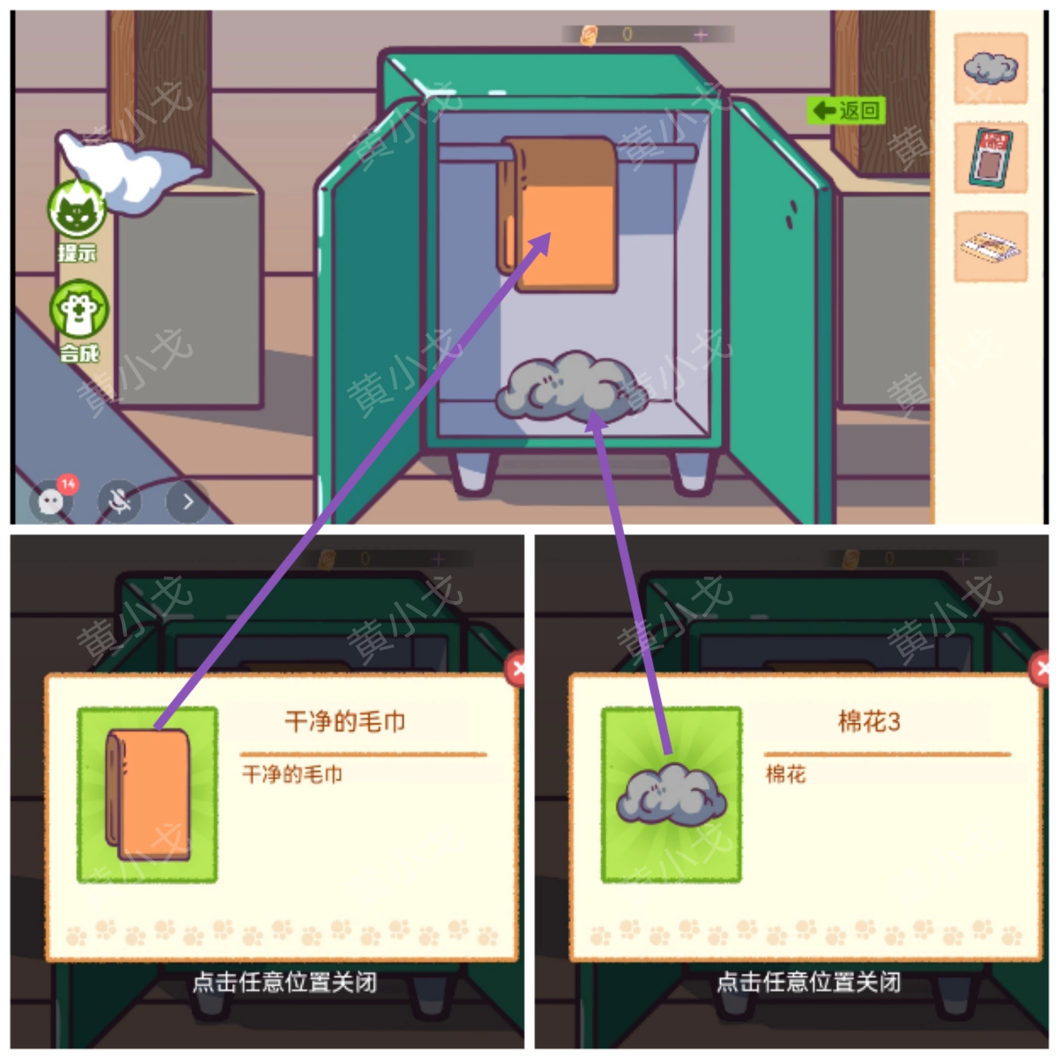 13.打开保洁箱,获得【棉花3】和【干净的毛巾】