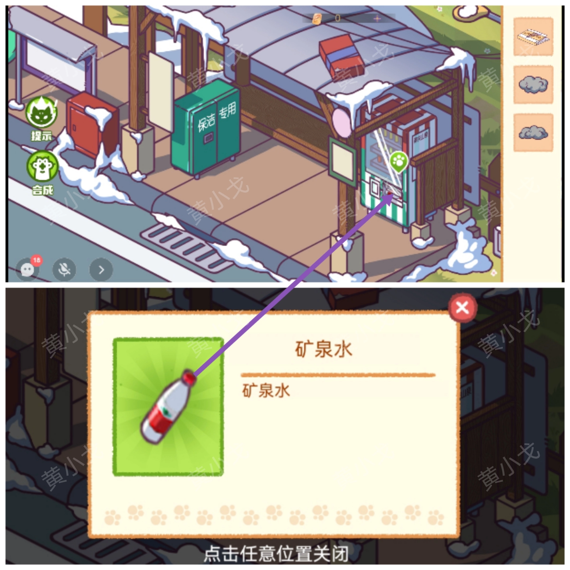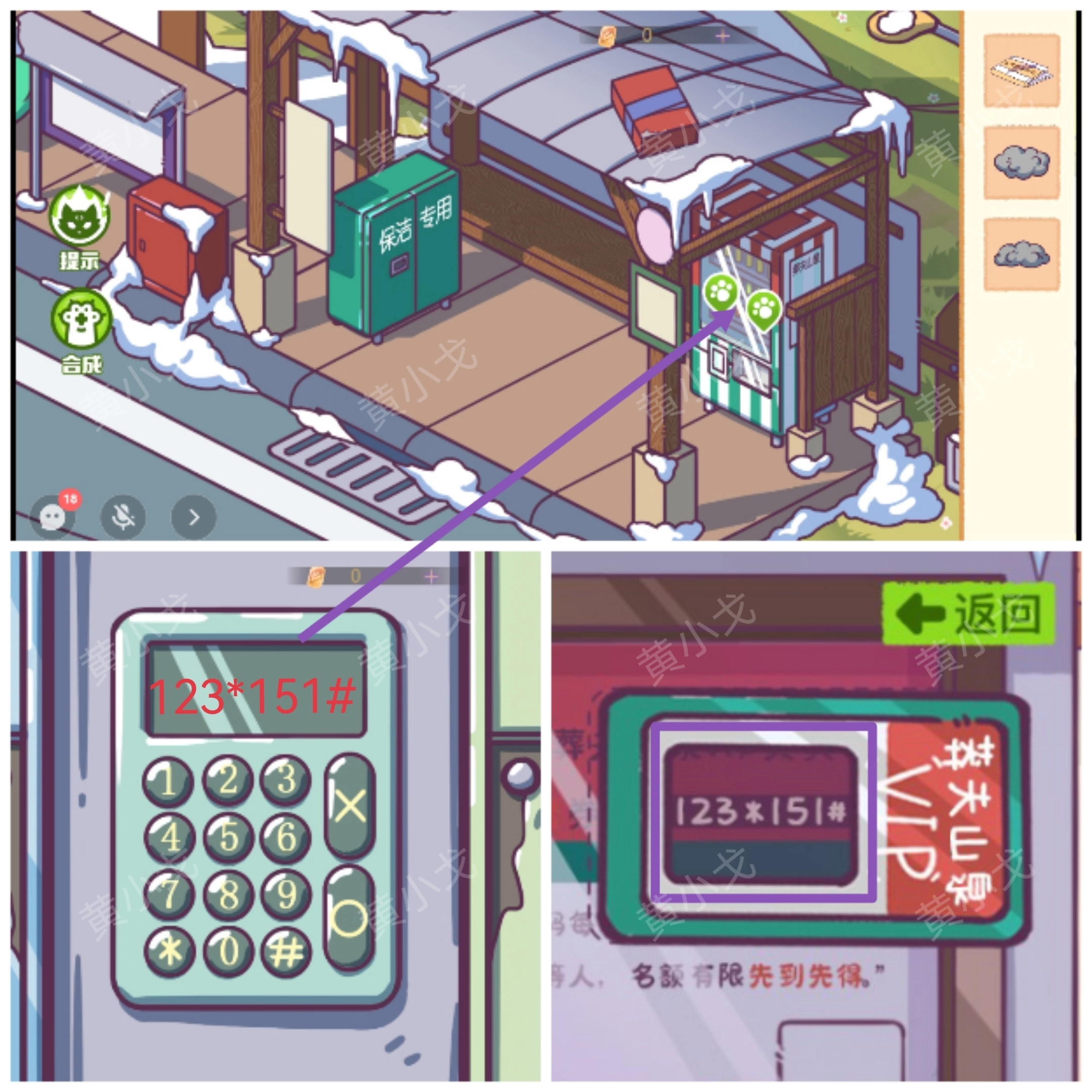 16. 在候车亭处,点击自动贩卖机,依据线索,输入券码(123*151#),随后可获得两瓶【矿泉水】