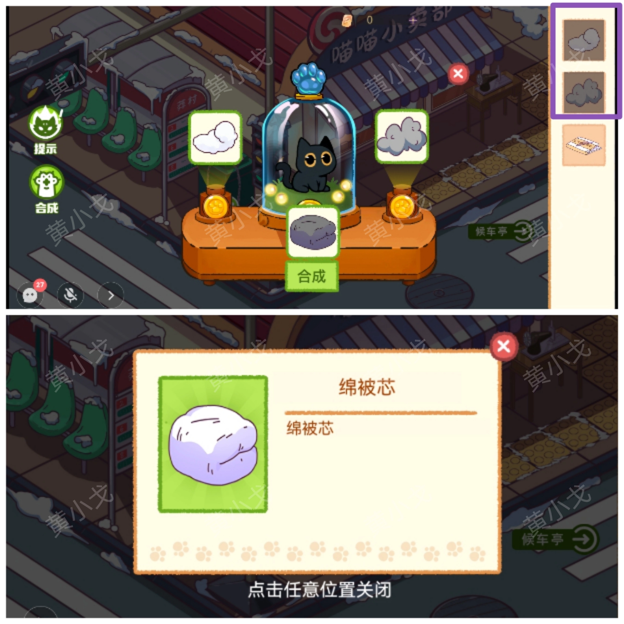 19. 将【三分之二的棉被芯】与【棉花1】(需团子传递过来)进行合成,从而获得【棉被芯】