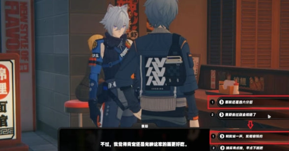 接着,前往六分街拉面店,在那里会遇到塞斯,与之对话时选择“六分街的拉面好吃,以后一起吃拉面”这类表述。(选择其他内容估计也无妨)