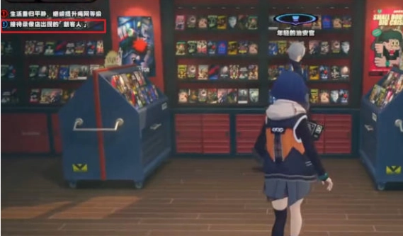 紧接着到了第二天,系统会提示录像店内出现[新客人],此时我们能在店内遇见塞斯,然后与他展开对话(对话内容随意选取,对后续情节无影响)。