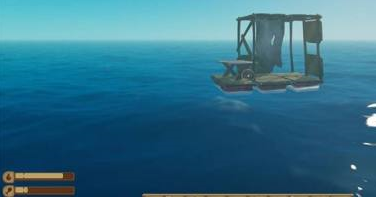 1首先得寻找到一座小岛,操控木筏朝着海岛的方向靠近,接着让木筏停下来。