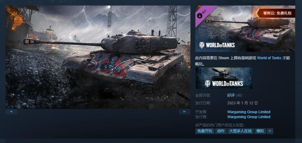 游戏的Steam商店页面链接为:https://store.steampowered.com/app/2254150/World_of_Tanks__Judgment_Day_Free_Pack/
