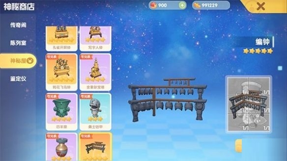 神秘屋的商品可都是顶级的,全是古董级别的珍藏!像珐琅、编钟、四羊鼎,还有各式各样的摩像青铜器之类的。随便买到哪一件都价值不菲,分量十足。要是能把全套都收集齐,家园直接变成博物馆都没问题。