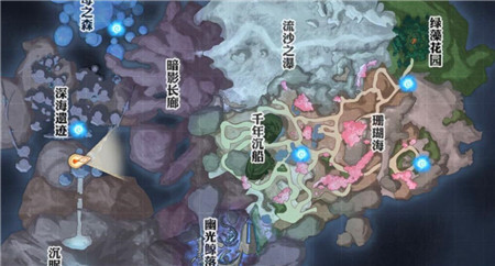 1、传送到深海遗迹,沿着平台后方的路径向上走就能到达。