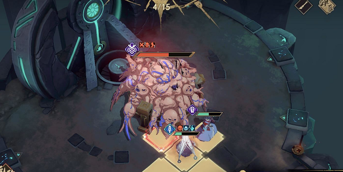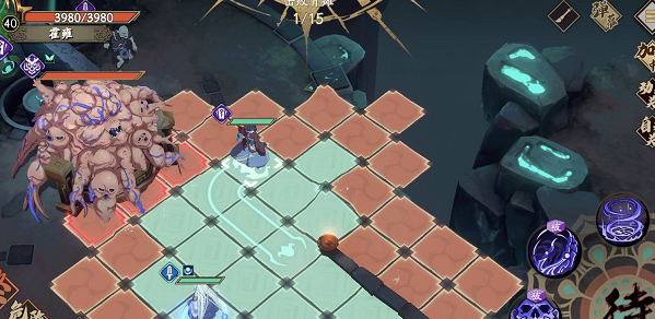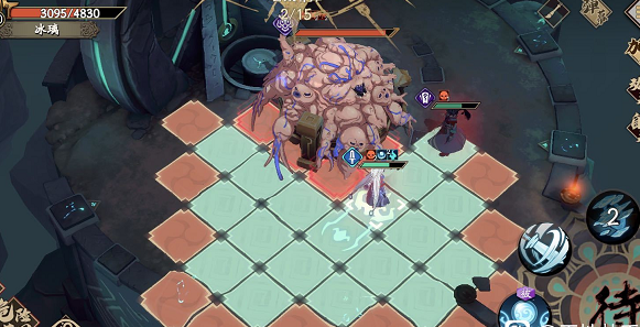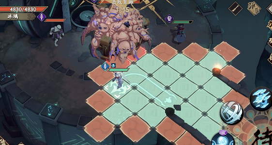 第二回合双方不得靠近一格范围,冰璃先利用再动技能给boss施加debuff