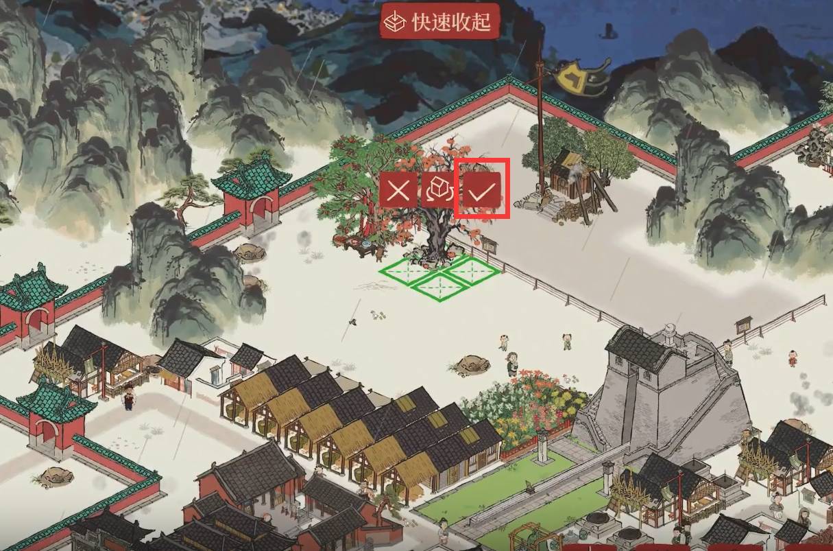 3、接着把它拖拽到想要建造的位置,点击对勾,就能完成建造了。