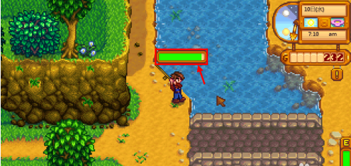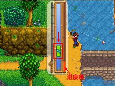绿色方块的上下移动由鼠标左键控制,鱼必须处于绿色方块的范围内,不然钓鱼就会失败。