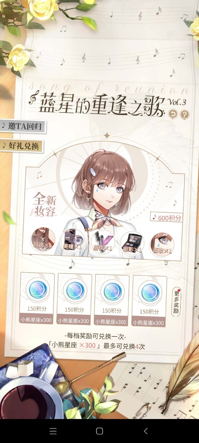 新活动开启啦!邀请好友回归就能赢取奖励,活动时间是4月8日5:00至5月7日4:59。每天分享一次活动,还能解锁全部妆容哦~