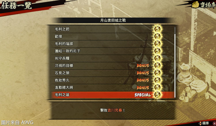 SP&bonus4:在触发阻止我方将领撤退的任务后,前往吉川元春所在位置将其击破;之后前往地图右下区域,击破三吉隆亮与口羽通良。