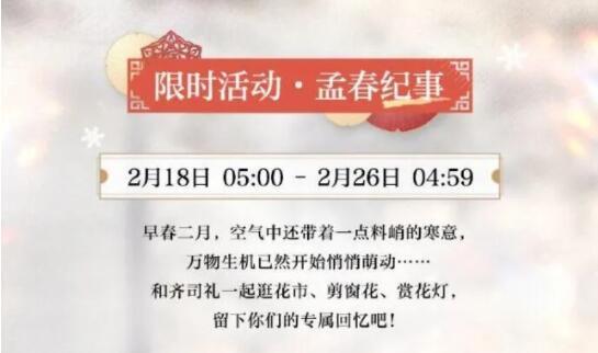 以上这篇文章就是光与夜之恋孟春纪事活动详情,更多攻略尽在本站。