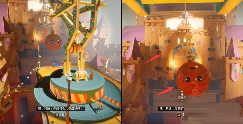 1. 双人成行里,保龄球撞门这一操作是为了开启大象城堡的大门,玩家会来到这台起重机的旁边。