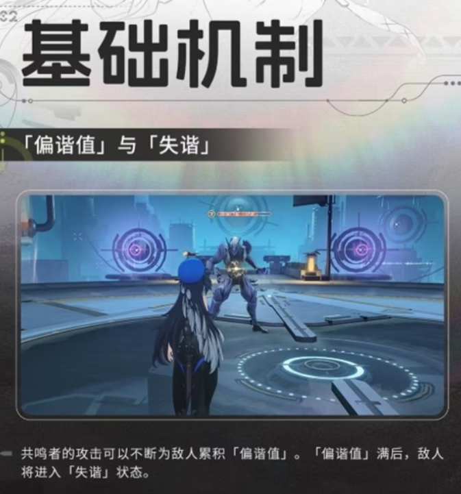 当进度条完全填满时,敌人会立刻进入“失谐”状态,其身体表面会浮现出幽蓝色的光痕。在这个状态下,对敌人造成的任何后续攻击都会触发一次额外的“谐度破坏”效果,并且会强制将其偏谐值清零。之后会进入一段短暂的真空期,期间敌人无法重新累积偏谐值,队伍可以抓住这个时机全力释放爆发伤害。